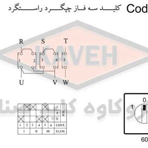 کلید گردان چپگرد راستگرد سه فاز 63 آمپر الکترو کاوه KA6308