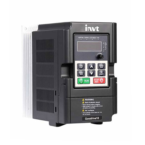 اینورتر تکفاز 0.75 کیلووات اینوت INVT مدل G10: این دستگاه یک اینوتر تکفاز به سه فاز 230V با توان 0.75KW از برند INVT با جریان خروجی 4.2A می باشد که با ابعاد کامپکت و کوچک نسبت به هم رده های خود و صفحه کلید با قابلیت جداشدن، برای کاربری های نیمه سنگین طراحی و ساخته شده است. اینورتر تکفاز اینوت سری GD10 از سری درایوهای کامپکت و کوچک شده شرکت INVT هستند که برای کاربری های نیمه سنگین و عمومی با توان پایین از قبیل دستگاه های چاپ، میکسر های سبک، ماشین آلات بسته بندی، ماشین آلات مواد غذایی و صنایع نساجی، سانتریفیوژ، ماشین آلات حکاکی، ماشین آلات برش و . . . ساخته شده اند و انتخابی مناسب و مقرون به صرفه برای کاربران می باشند. این سری از اینورترهای INVT در دو نوع سه فاز و تکفار با درگاه های ورودی و خروجی متنوع و ارتباطات استاندارد ساخته شده اند و با پشتیبانی از فناوری کنترل V / f برداری و چندین عملکرد مشترک مانند کنترل PID، چند سرعته بودن، ماژول ترمز DC داخلی و ارتباطات Modbus و توابع در صنایع مختلف مورد استفاده قرار می گیرند و از محبوبیت بالایی برخوردارند. کی پد اینورترهای سری GD10 اینوت دارای قابلیت جدا شدن و اتصال مجدد است و در وسط قسمت بالایی قرار می گیرد.