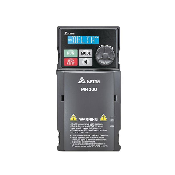 اینورتر دلتا MH300 با داشتن چندین عملکرد خاص مانند کنترل حلقه باز موتورهای القایی برای کاربردهای آسانسور مناسب است. از دیگر ویژگی های این درایوها می توان به طراحی کامپکت، نصب سریع و آسان، رابط کاربر پسند و … اشاره نمود. این درایوها از جمله درایوهای جمع و جور می باشد که با کاهش 40 درصدی در اندازه درایو باعث صرفه جویی در فضا شده است. این درایوها در دو مدل سه فاز با ولتاژهای ورودی 200V-240V در توان های 2.2kW تا 15kW و ولتاژ ورودی 230V-480V در توان های 3.7kW تا 15kW در بازار عرضه شده است. اینورتر دلتا MH300 دارای صفحه نمایش LCD و کیپد جداشونده می باشد که بر روی کیپد آن ولوم تغییر فرکانس نیز تعبیه شده است. همچنین پورت USB تعبیه شده بر روی درایو قابلیت اتصال به رایانه، تنظیم پارامترهای درایو، انتقال و کپی کردن پارامترها رو داراست.