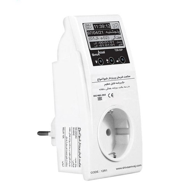 ساعت فرمان پریزدار شیوا امواج، دستگاهی مناسب برای روشن و خاموش کردن اتوماتیک وسایل برقی خانگی با ۵۰ برنامه قابل تنظیم می باشد. هر برنامه،دارای یک زمان روشن و یک زمان خاموش است و در دوره های زمانی روزانه، هفتگی و ماهانه قابل تنظیم می باشد. در حالت روزانه، ساعت دقیقه و ثانیه، در حالت هفتگی، ساعت دقیقه ثانیه و روز هفته و در حالت ماهانه، ساعت دقیقه ثانیه و روز ماه قابل تنظیم می باشد. در حالت روزانه می توان روزهای فعالیت را نسبت به هفته یا ماه فعال یا غیر فعال کرد و در حالت ماهانه می توان روزهای فعالیت را نسبت به روزهای هفته فعال یا غیر فعال نمود.