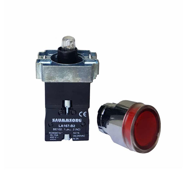 شاسی استپ چراغدار طرح تله سامسونگ مدل XB2-BW3471، از جمله شستی های تک فرمان یا کلیدهای لحظه ای فرمان است که به آن شستی قطع یا شستی STOP نیز می گویند. از این نوع شستی ها جهت قطع لحظه ای و موقت جریان در مدار فرمان سیستم های اتوماسیون و خط تولیدها و تابلوبرق های صنعتی استفاده می شود و به واسطه آن، تجهیزی که شستی استپ در آن به کار رفته است، به طور موقت و لحظه ای با فشردن شستی، مدار فرمان قطع و تجهیز خاموش می شود و به محض برداشتن انگشت از روی آن، مجدد مدار فرمان وصل و تجهیز راه اندازی می شود. این شاسی استپ چراغدار سامسونگ که دارای عملکرد موقت و لحظه ای است، دارای ابعاد کوچکی بوده که با توجه به رنگ بندی هایی که دارد، جایگزین بسیار مناسبی به جای استفاده از کلید در مدار فرمان می باشد. شکل کلگی شاسی های استپ XB2 برند سامسونگ به شکل دایره بوده و درون قالب و گاردی از جنس فلز که آن هم به شکل دایره می باشد و همانند محافظ عمل می کند، جای داده شده است که مانع از برخورد اتفاقی اجسام به آن می شود. این نوع از شستی ها برای شروع به کار کردن نیاز به اعمال فشار توسط انگشت دست دارد که باید اینکار به صورت کامل و صحیح انجام شود.