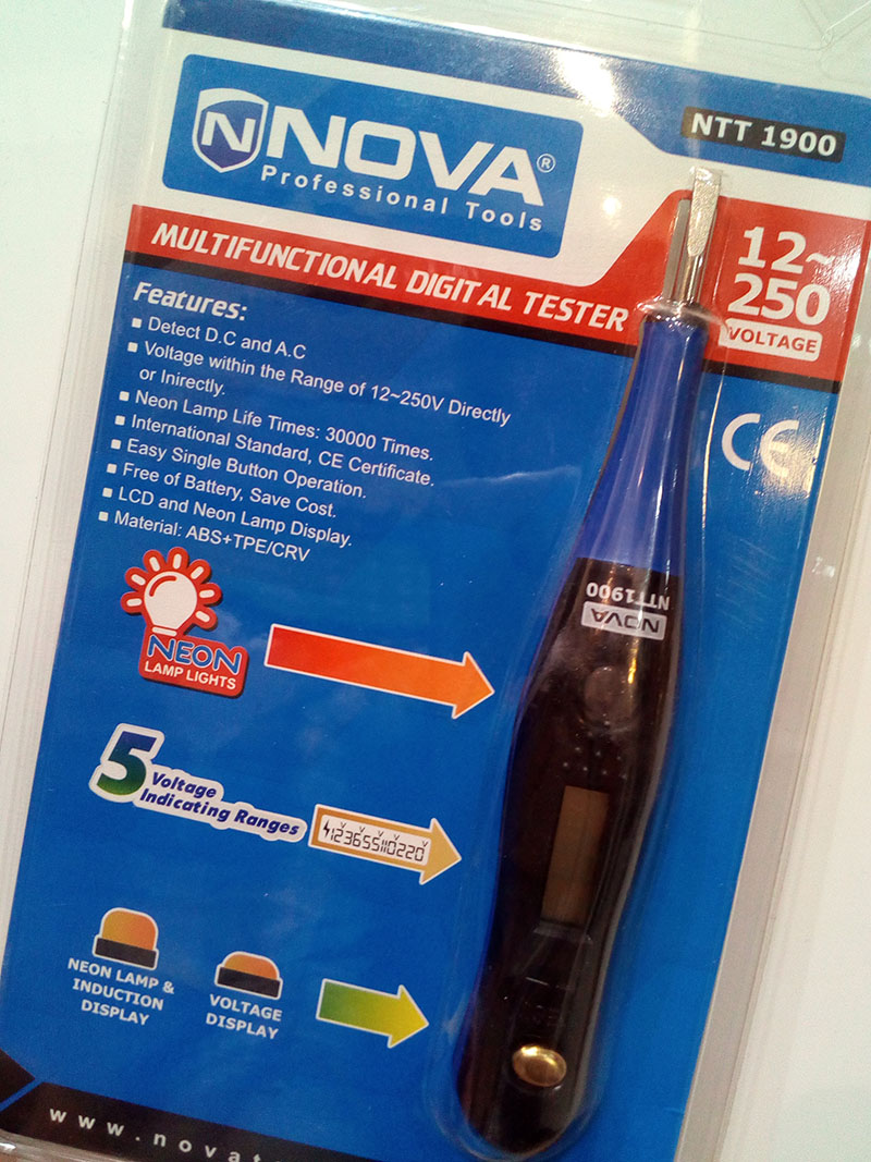 فازمتر دیجیتالی نوا مدل NTT 1900 یکی از محصولات برند نووا (NOVA)، با محدوده ولتاژ کاری از 12 الی 250 ولت مستقیم و غیر مستقیم و قابلیت نمایش 5 ولتاژ به صورت مجزا 12V, 36V, 55V, 110V, 220V است.