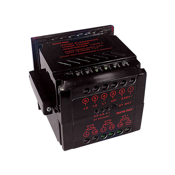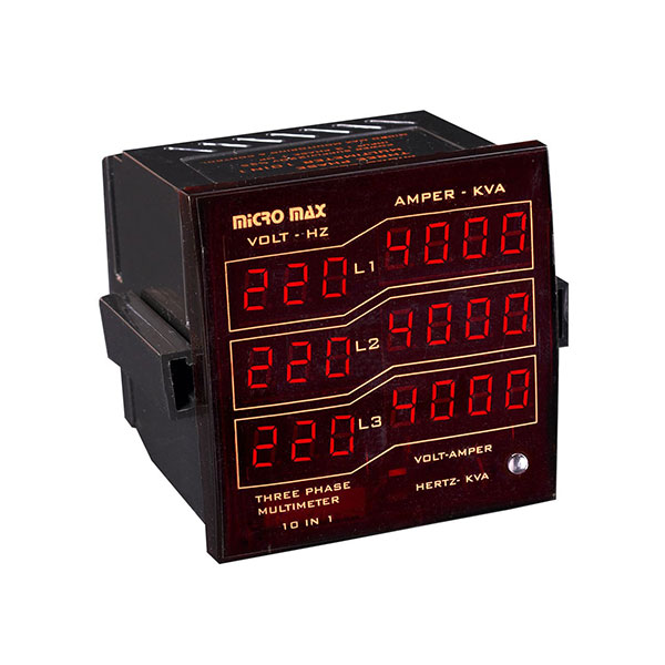 مولتی متر سه فاز مجموعه دیجیتال (96*96) میکرومکس وسیله ای جهت اندازه گیری و نمایش ولتاژ، جریان، فرکانس و توان ظاهری می باشد. سیگنال ورودی این مولتی متر ولتاژ و جریان AC می باشد و دامنه اندازه گیری فرکانس 30 تا 900Hz است. کلیه محصولات میکرومکس دارای 1 سال گارانتی و خدمات پس از فروش می باشد. این محصول از دقت و کیفیت بالایی برخوردار است. مولتی متر سه فاز تابلویی همانطور که از نامش پیداست در تابلو برق ها و تابلو های فرمان مورد استفاده قرار میگیرند. برخی از مولتی متر ها بر روی ریل در داخل تابلو قرار گرفته و برخی بر روی در تابلو نصب می شوند.