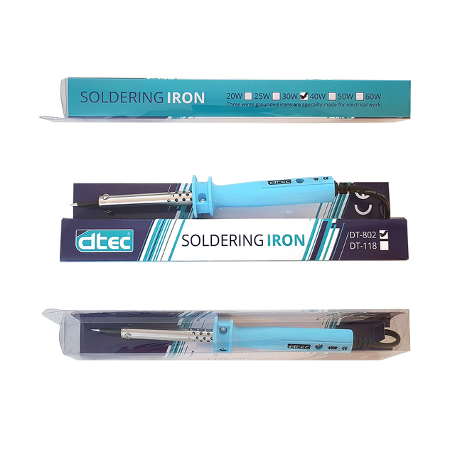 هویه قلمی 40W برند Dtec، با برق شهری و با توان 40 وات کار میکند و با کیفیت قابل قبولی تولید میشود. بدنه دستگاه از جنس پلاستیک طراحی و ساخته شده است. هویه قلمی Dtec، یکی از بهترین هویه های موجود در بازار ایران است که به علت دارا بودن المنت خوب و نوک نسوز یکی از پرفروش ترین محصولات در ضمینه الکترونیک می باشد.