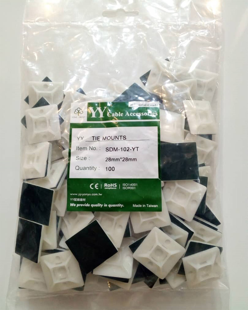 پایه چسبدار بست کمربندی YY از نایلون ۶/۶ مقاوم در برابر اشتعال- خودخاموش شونده با استاندارد V-2 UL 94 ساخته شده است، بدین معنی که در مقابل اشتعال مقاوم هستند، و در صورت اشتعال نیز خود به خود خاموش می شوند. این پایه چسب ها، عموما دارای رنگ طبیعی پلی آمید ۶۶ (بی رنگ و کمی متمایل به رنگ سفید) می باشند.