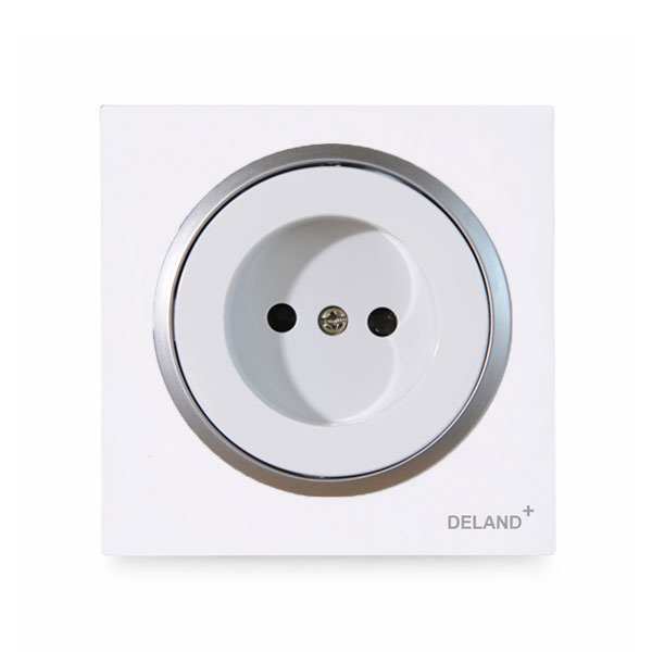 پریز برق پایه سرامیکی دلند پلاس مدل آوا سفید زه نقرهای