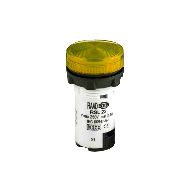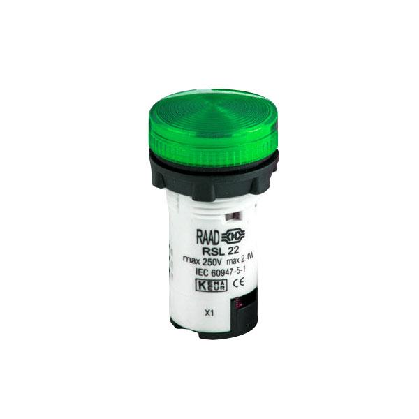 چراغ سیگنال 24 ولت با LED قابل تعویض رعد مطابق با استاندارد بین المللی IEC60947-5-1 طراحی شده و از کیفیت بالای مواد اولیه و ساخت برخوردار است. بدنه این چراغ سیگنال از جنس پلی آمید غیر قابل اشتعال ساخته شده است و در رنگ های سبز، قرمز، زرد، آبی و سفید و با ولتاژ های 24، 48، 110 و 220 ولت عرضه می شود. چراغ سیگنال رعد در دو مدل، سیگنال با لامپ قابل تعویض (RSL22) و سیگنال لامپ ثابت (IN22) تولید می شوند. چراغ سیگنال RSL22 قابلیت استفاده از لامپ های میخی BA9S و لامپ های LED دو طرفه را دارد. طول عمر بالا، میزان روشنایی استاندارد و سهولت در نصب از دیگر ویژگی های سیگنال رعد است.