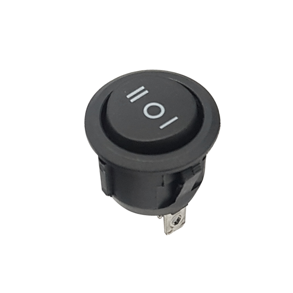 کلید راکر دایره ای شکل بدون چراغ، از نوع کلیدهای سه حالته، وسط خاموش می باشد. جهت مصارف صنعتی و لوازم الکترونیکی و برقی، تعمیر قسمت کلید سه حالته انواع دستگاه ها یا ساخت پروژههایی که در آن ها نیاز به کلید راکر سه حالته گرد است. جنس بدنه و سطح کلید پلاستیکی عایق، جنس پایه ها فلزی دارای حفره، رنگ بدنه و سطح کلید مشکی می باشد.