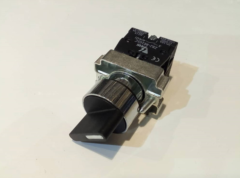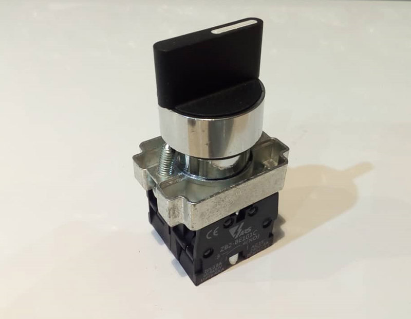 نوع سه حالته یا دوطرفه این کلیدها معمولا برای استارت، استپ و تغییر وضعیت کارکرد مدار استفاده میشود. این سلکتورها معمولا با دو حالت 1 و 0 و 2 شناخته شده و علاوه بر فرمان استارت و استپ مدار، میتوان از آنها برای کنترل دستی دو موتور یا بار بطور غیر همزمان، تغییر فاز موتورها (چپگرد و راستگرد)، تبدیل AC و DC به یکدیگر، تغییر سرعت موتور، تبدیل حالت موقت به کار دائم، تغییر وضعیت یا چنج آور (Change Over) در مدار و … استفاده کرد. استفاده از نوع سهحالته برای تغییر وضعیت یا سایر موارد ذکر شده بهتر و مناسبتر میباشد.
