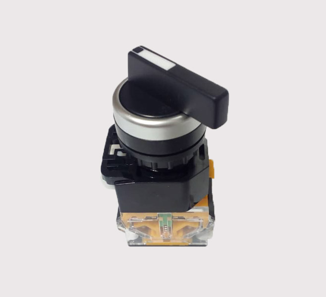 نوع سه حالته یا دوطرفه این کلیدها معمولا برای استارت، استپ و تغییر وضعیت کارکرد مدار استفاده میشود. این سلکتورها معمولا با دو حالت 1 و 0 و 2 شناخته شده و علاوه بر فرمان استارت و استپ مدار، میتوان از آنها برای کنترل دستی دو موتور یا بار بطور غیر همزمان، تغییر فاز موتورها (چپگرد و راستگرد)، تبدیل AC و DC به یکدیگر، تغییر سرعت موتور، تبدیل حالت موقت به کار دائم، تغییر وضعیت یا چنج آور (Change Over) در مدار و … استفاده کرد. استفاده از نوع سهحالته برای تغییر وضعیت یا سایر موارد ذکر شده بهتر و مناسبتر میباشد.