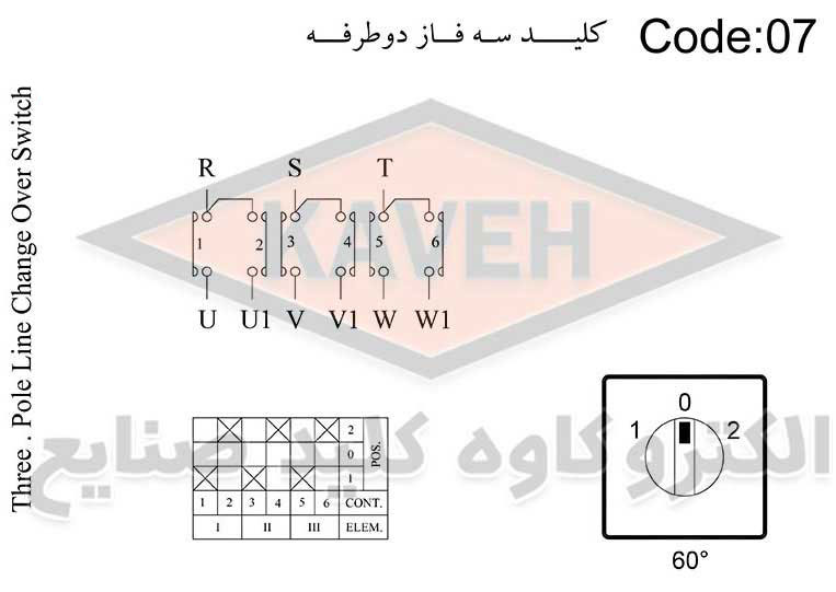 کلید گردان سه فاز دوطرفه 50 آمپر الکترو کاوه KA5007