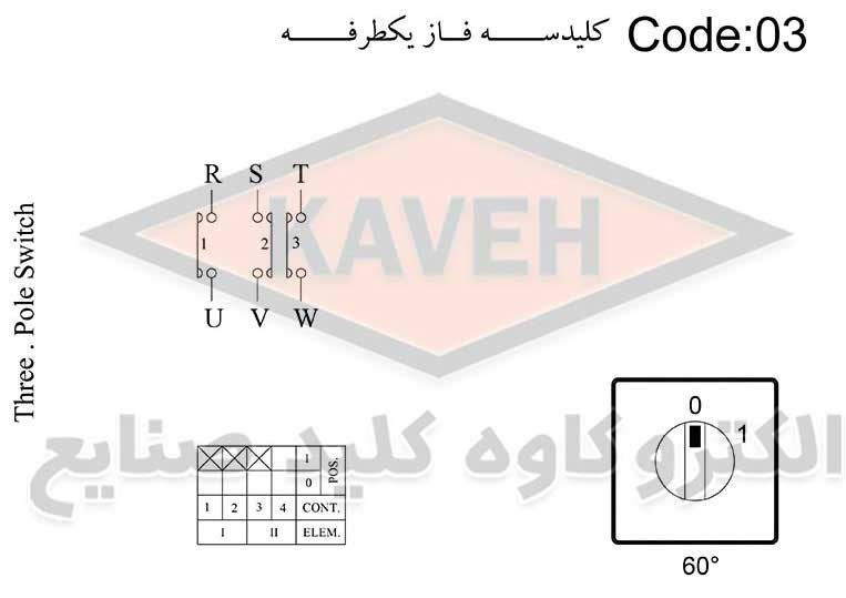 کلید گردان سه فاز یکطرفه 40 آمپر الکترو کاوه KA4003