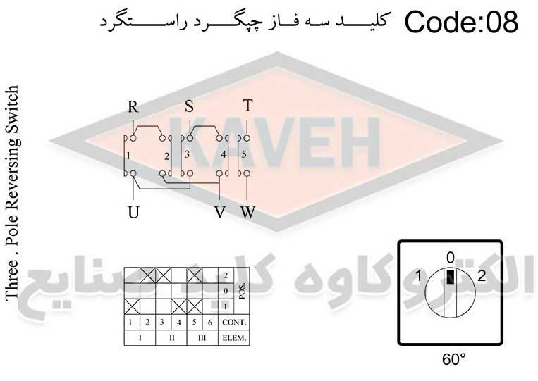 کلید گردان چپگرد راستگرد سه فاز 50 آمپر الکترو کاوه KA5008