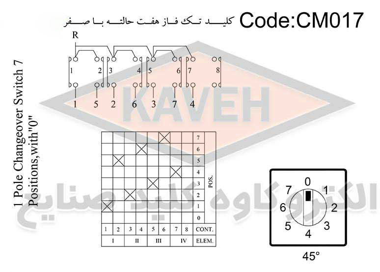 کلید گردان یک پل هفت حالته با صفر الکترو کاوه 25CM017